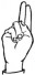 На ћирилици написано АЛЕКСАНДРА БОЛУНОВИЋ састоји се из 19 слова [?]. Исписано ћириличном једноручном азбуком за глувонеме: